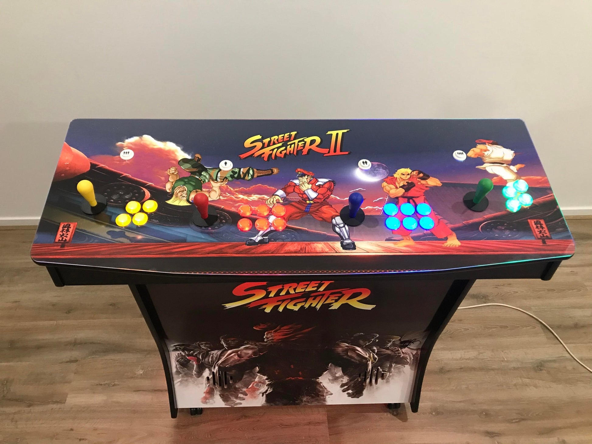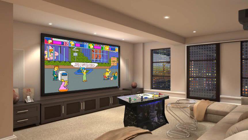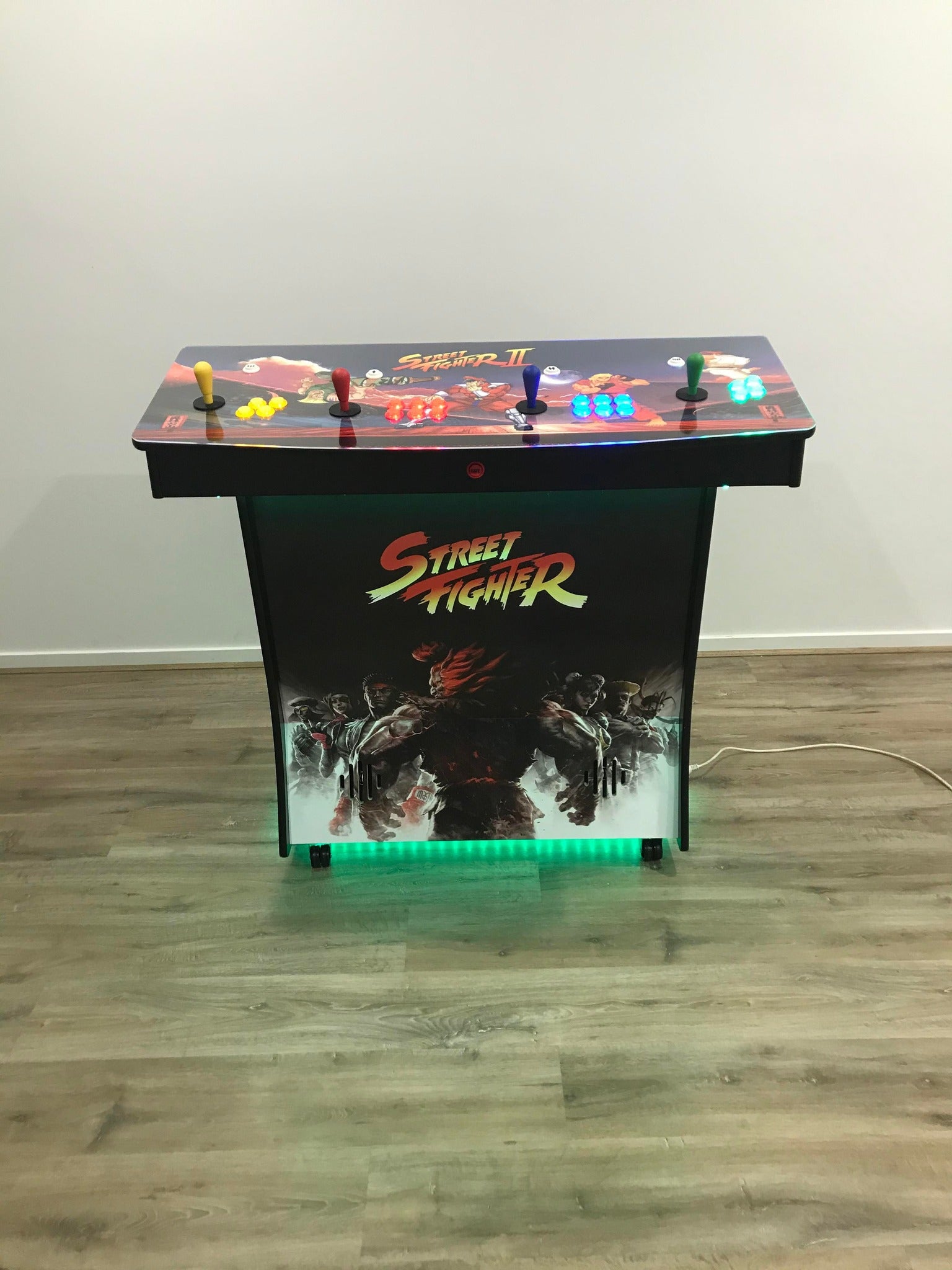 This Pedestal is a great addition to the family home with its sleek custom design, Projector pedestal with 2 and 4 Player Feature, 10 Thousand games running Raspberry Pi ,Logitech speakers and easy to use Console and game selection with custom loading videos of your choosing.